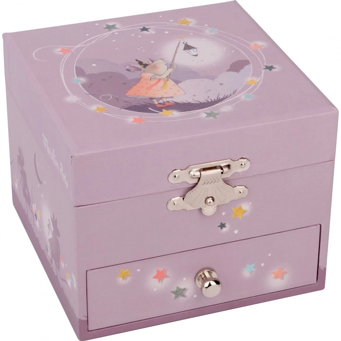 Délicate et précieuse, la coffret « Il « était une fois » est aussi une qui gardera précieusement les bijoux et les accessoires des petites filles coquettes. Idée de cadeau de naissance original, la boite à musique coffret fera un bel élément de