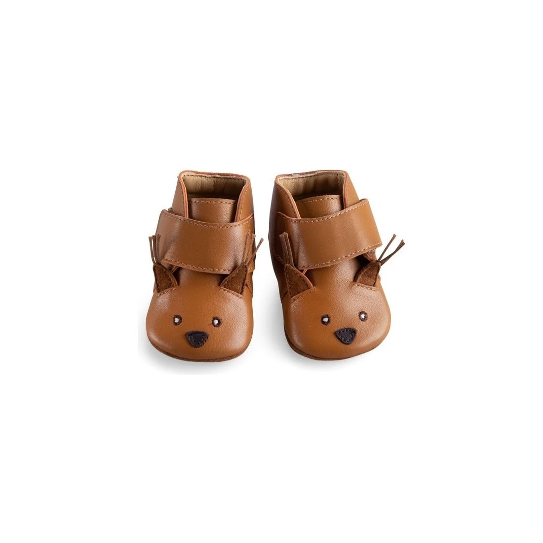 Les sont en cuir, avec une fermeture velcro pour le coté pratique. A l’effigie d’Harry l’écureuil de la collection, ils tiendront au chaud les petits pieds de bébé.