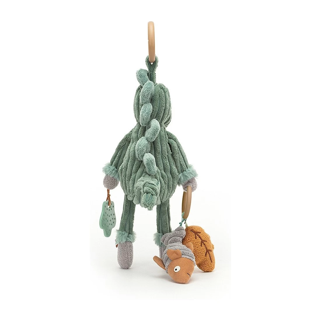 Jouet d’activité Cordy Roy Dino super mignon et drôle de la marque . Attachez le jouet à la poussette, au parc, au baby gym ou au maxi cosi et jouez ! Avec les longs rubans, les crépitements, les grincements et les anneaux, il y a de quoi jouer et découvrir.