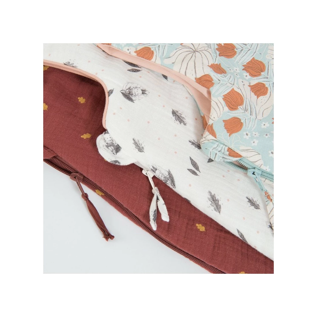 Dimensions de la turbulette : 90 cm. TOG 3 (Plus le TOG est élevé, plus la gigoteuse est chaude). Voir notre article Blog « ». La gigoteuse est en lange de coton bio et doublure 100% coton pour laisser respirer la peau de bébé.