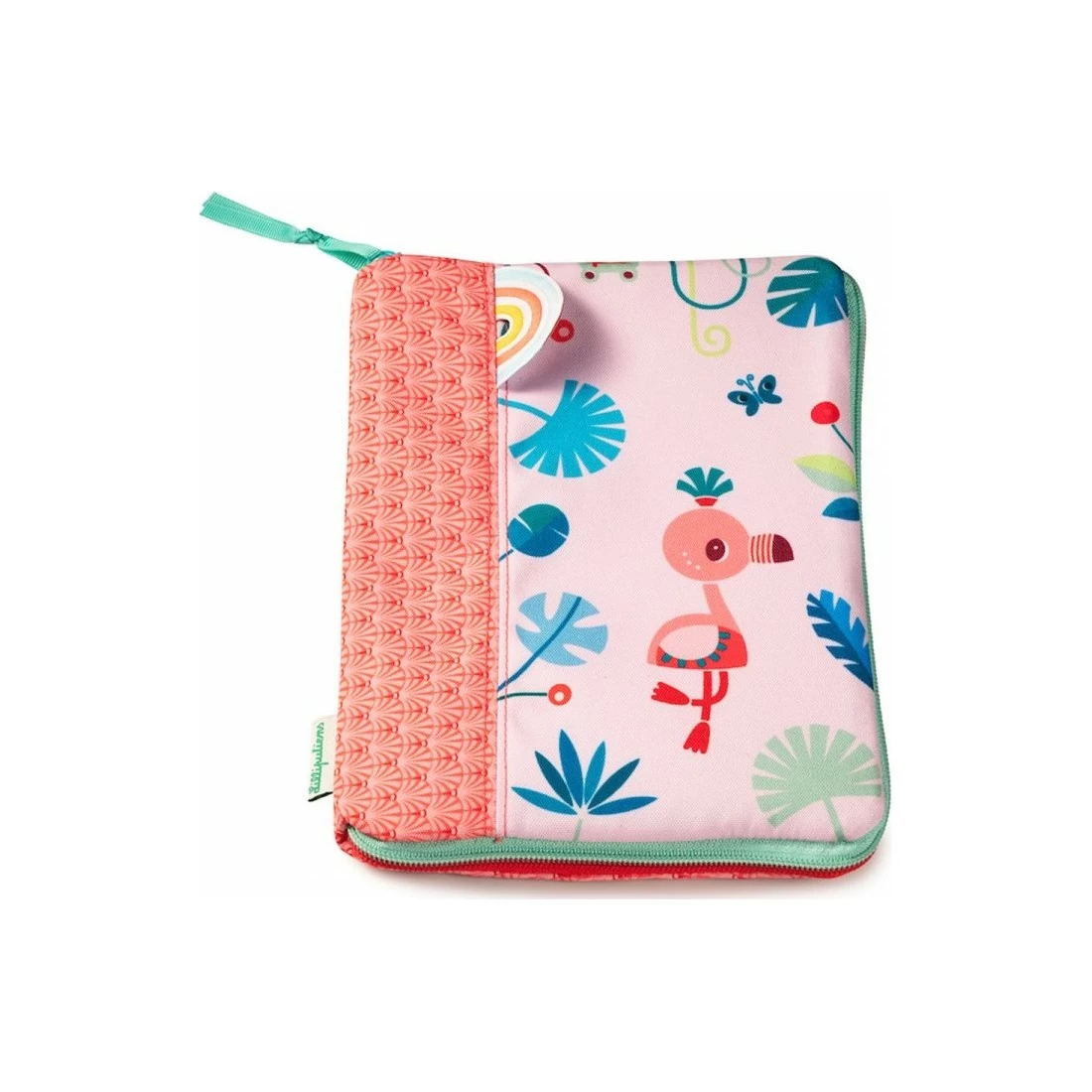 La housse de est une belle pochette de protection pour carnet de santé de la marque Lilliputiens. De couleur rose, en polyester facilement lavable, zippée avec une fermeture éclair sur le côté pour plus de sécurité, elle est décorée aux couleurs et à l’effigie de la belle et gracieuse Anaïs, le flamant rose mascotte de la marque. Anaïs, reconnaissable à ses longues pattes, est entourée de feuilles tropicales dans un décor coloré qui plaira aux petites filles.