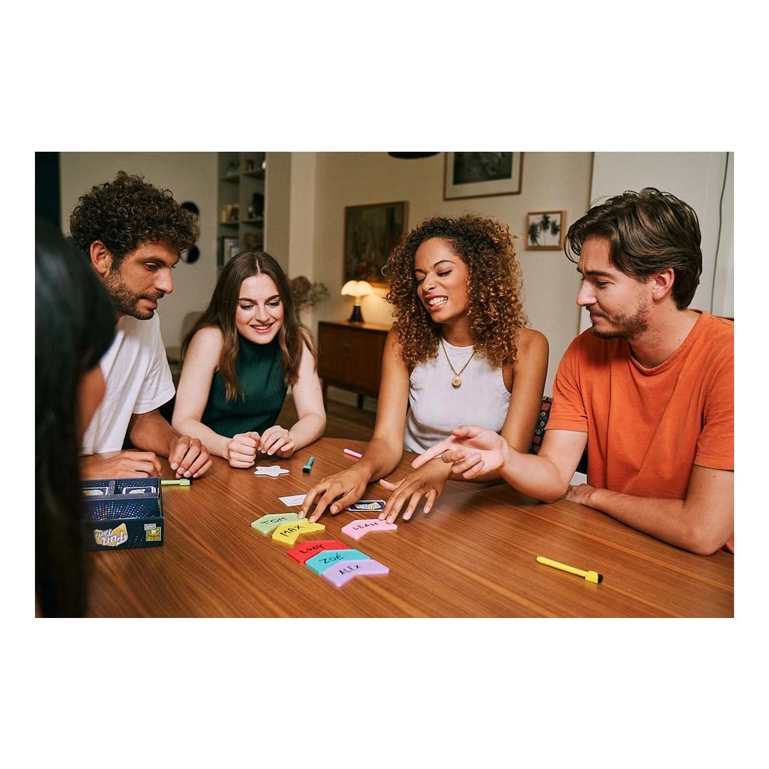 Plus de secrets entre vous ! Vous allez vous découvrir les uns les autres, en répondant à des questions qui partent dans tous les sens. Ouvrez la boîte et commencez directement à jouer ! Répondez, placez, révélez !