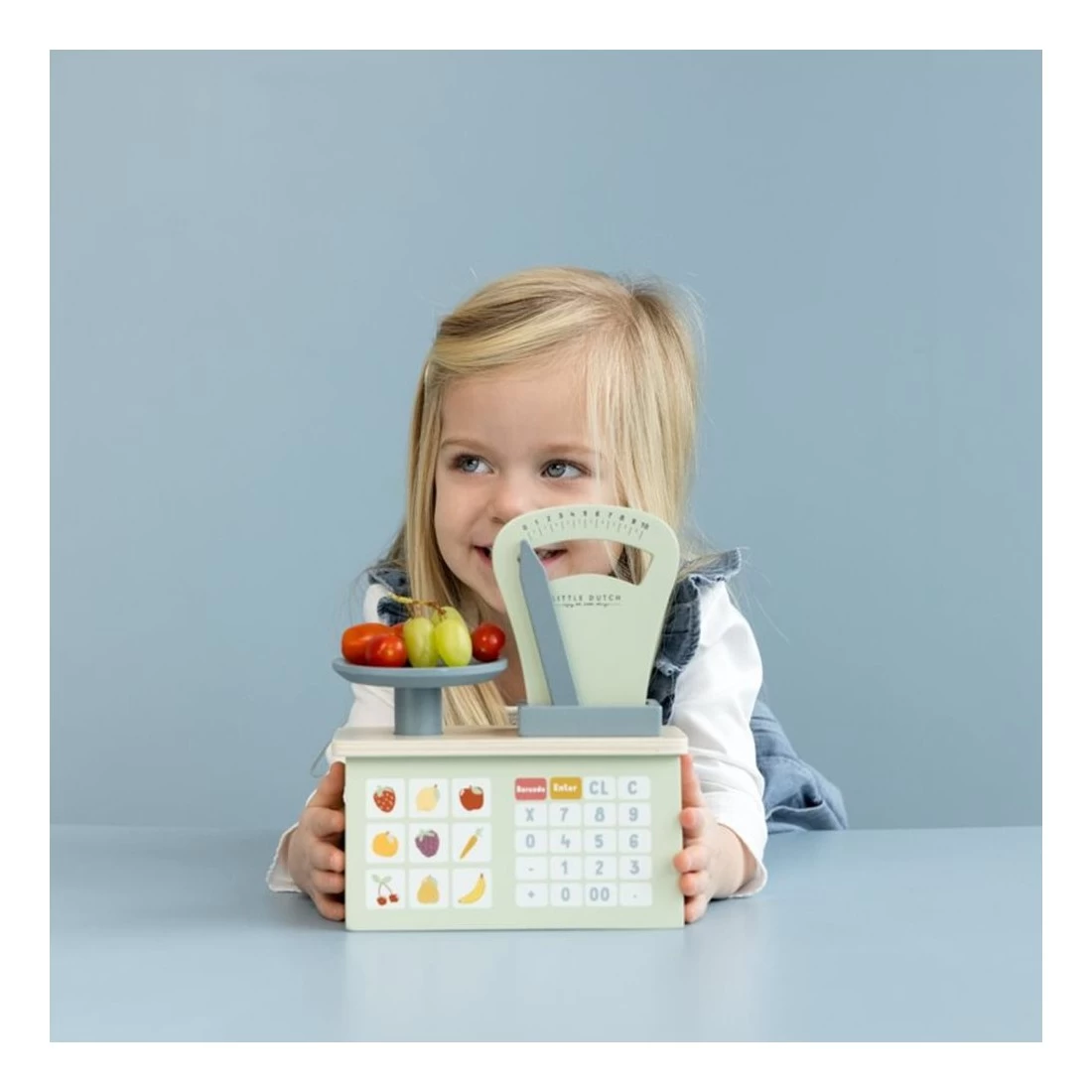 Imagine un instant : tu as ton propre magasin de fruits et légumes. Avec cette jolie balance, tu es une véritable marchande de fruits et légumes. Pèse les produits et calcule le prix total pour ton client. Ou utilise la balance en pour peser les ingrédients pour tes recettes préférées. La balance de marchande pour enfants est non seulement formidable pour le jeu de rôle, mais contribue également au développement des compétences sociales, locomotrices et mathématiques de votre enfant. Ajoutez-y les fruits à découper pour encore plus de plaisir de jeu.