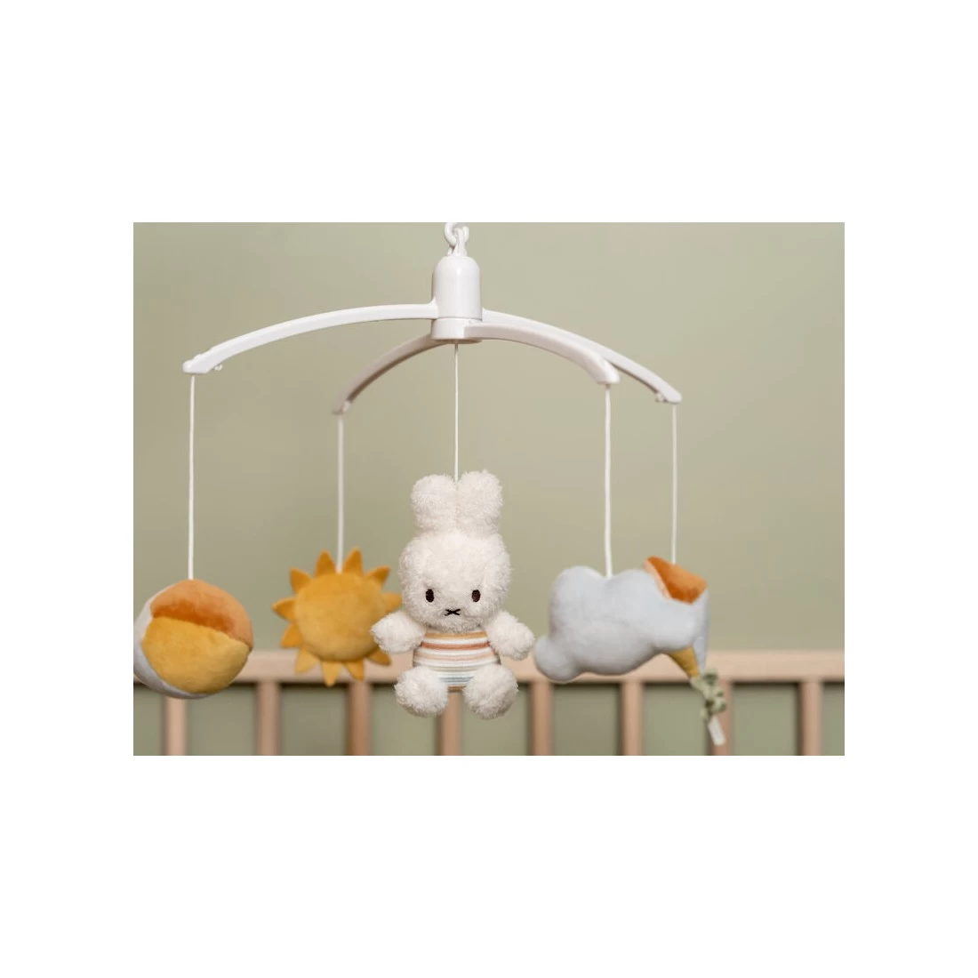 Suis miffy et la chanson démarre ! Elle est habillée en Vintage Sunny Stripes de du soleil, d’un nuage, d’un cerf-volant et d’un ballon de plage. Pendant que tout le cortège tournoie, tu tombes tranquillement dans les bras de Morphée grâce à l’adorable musique.