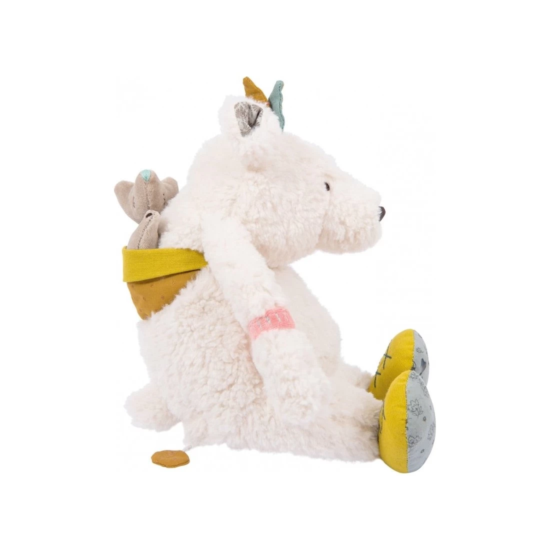 L’ours en à l’effigie de Pom, l’ours blanc tout doux et moelleux de la gamme « » est un adorable , qui apaisera et endormira bébé au son d’une jolie musique.