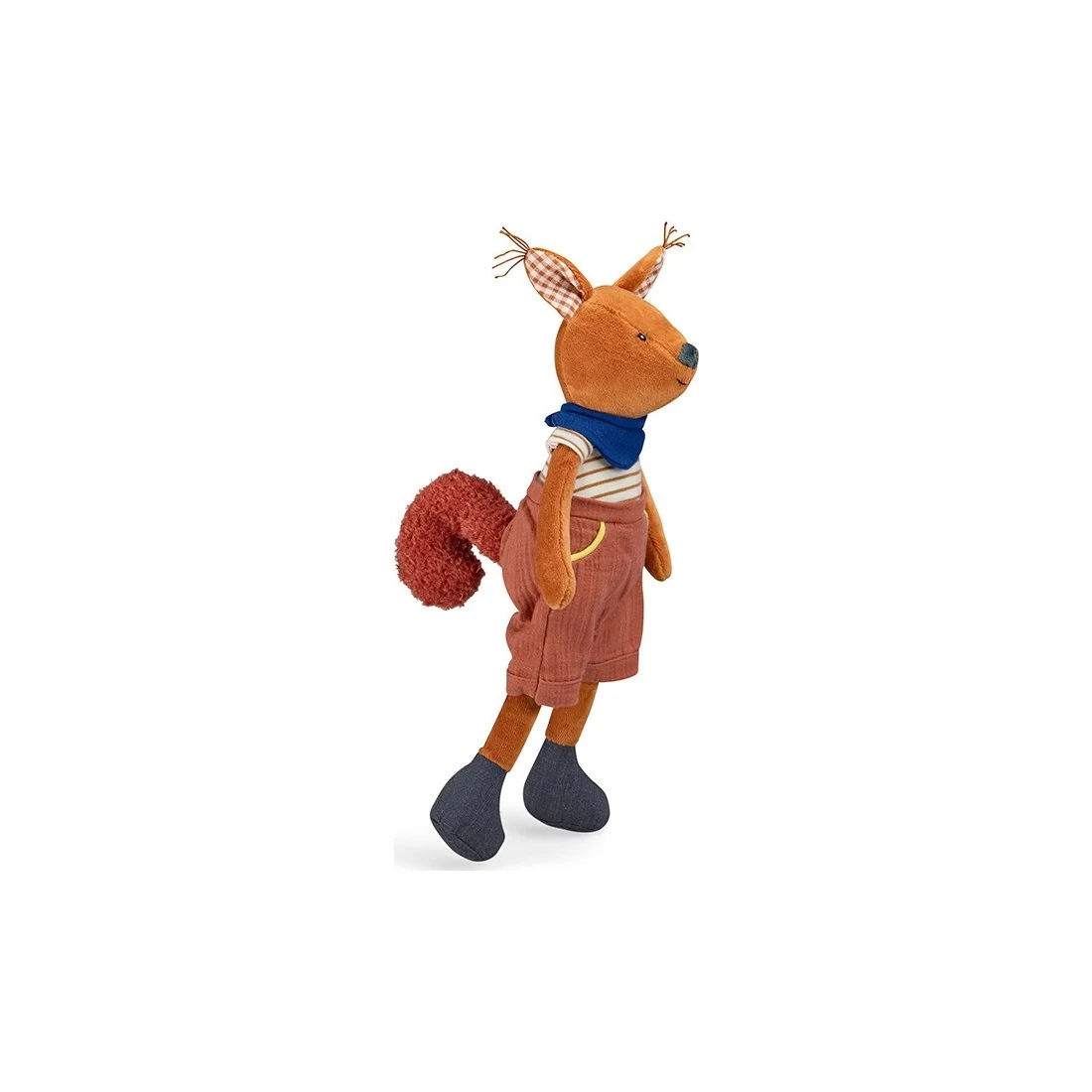 L’écureuil Harry de la collection de animal en et très doux. Avec un style vestimentaire bien français il porte un pantalon court, un t-shirt rayé et un foulard bleu.
