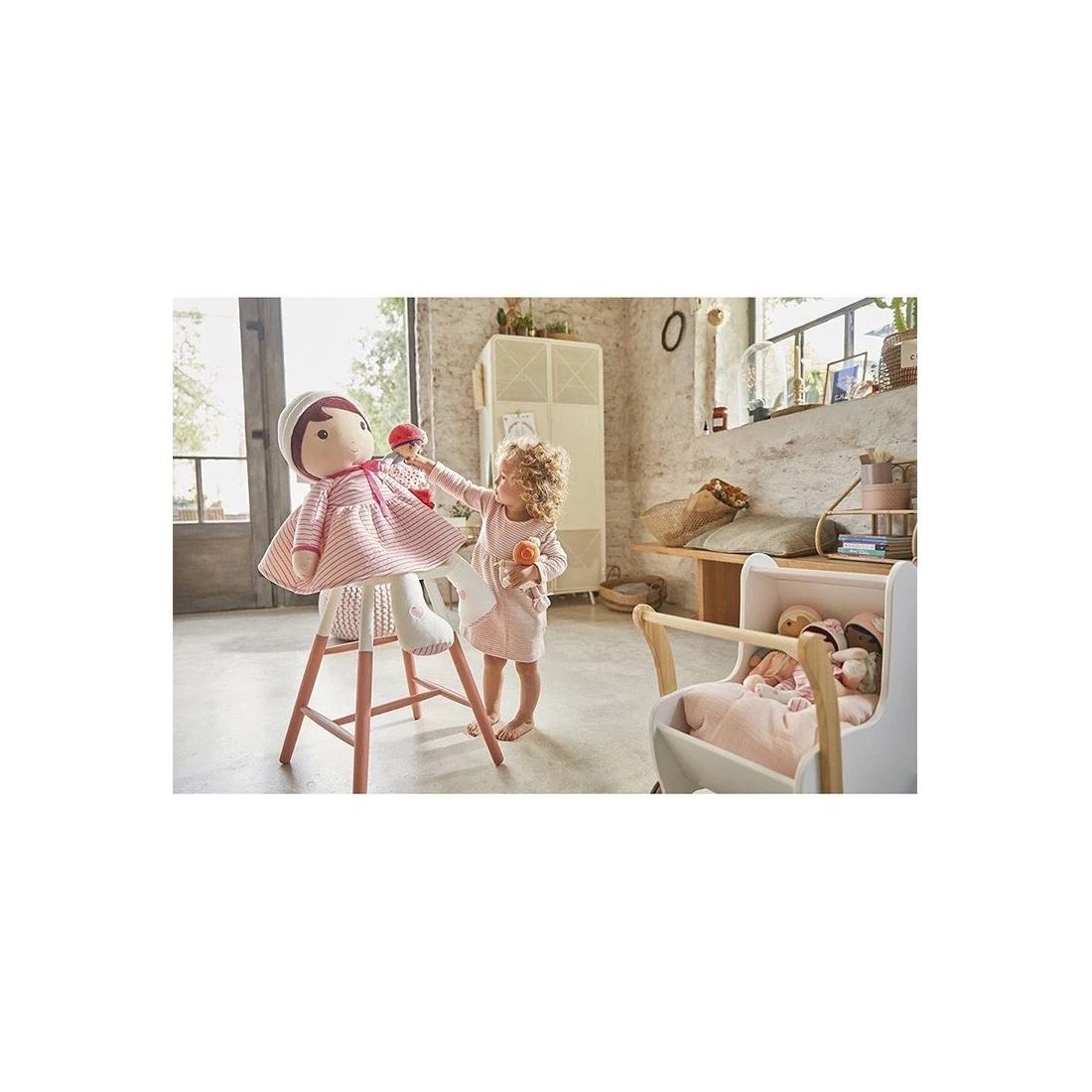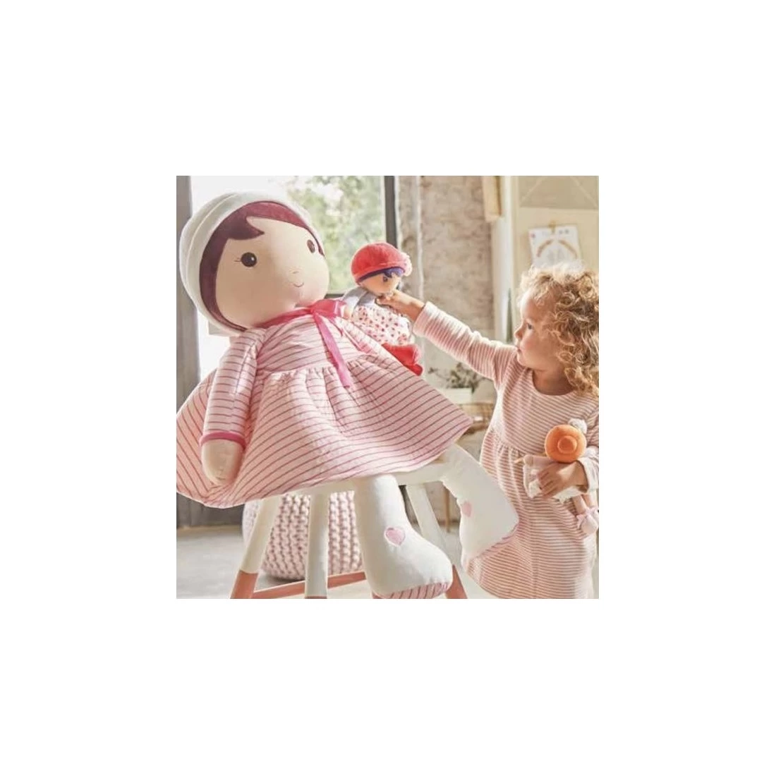 Cette belle poupée en tissu rose est disponible également en plusieurs tailles si vous la trouvez trop grande en 80 cm.