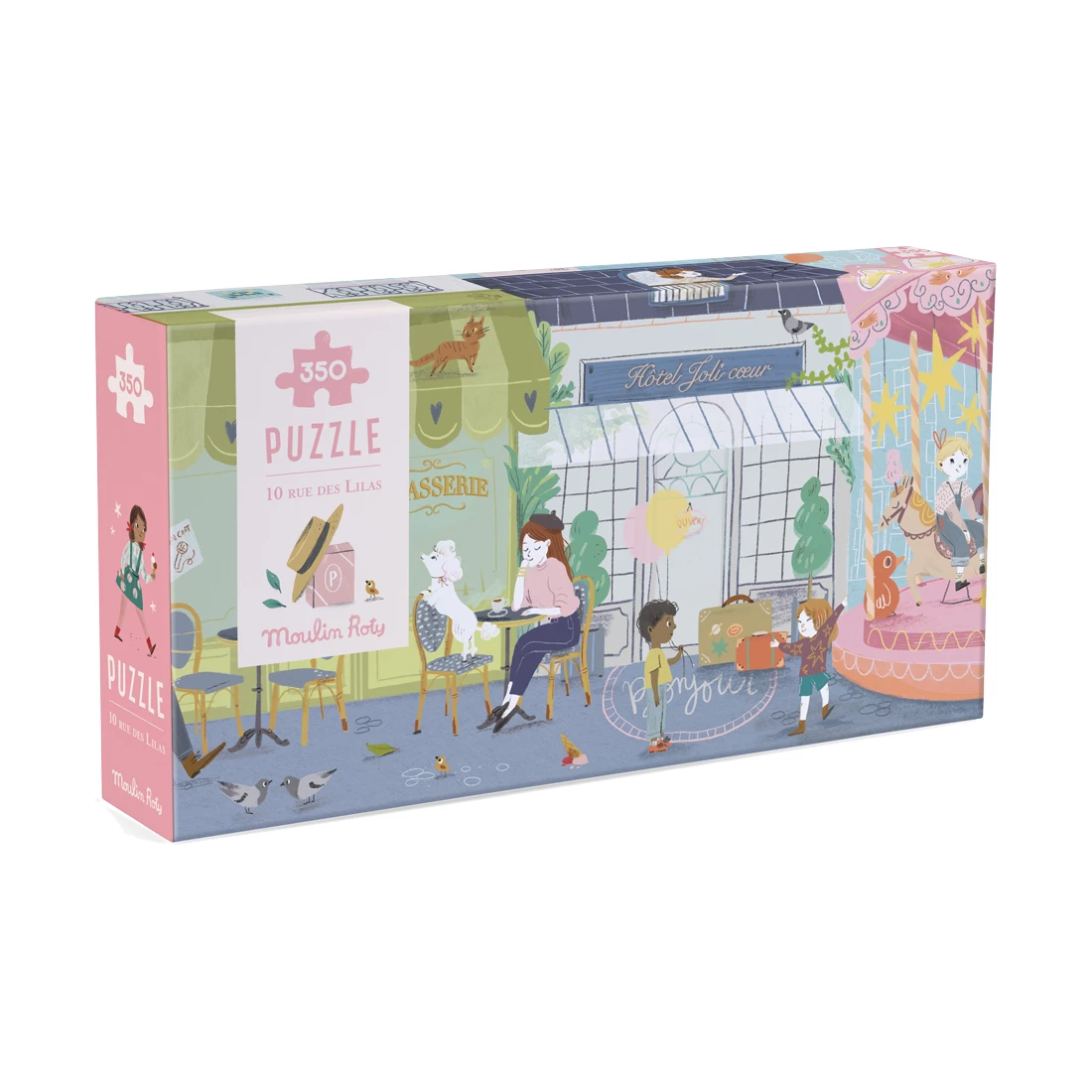 350 pcs. 10 rue des Lilas. illustré par Lucille Michieli + 1 poster modèle. Façades colorées. petits commerces de proximité… à toute heure de la journée. aiment se retrouver dans cette jolie rue très animée. 7 ans et +