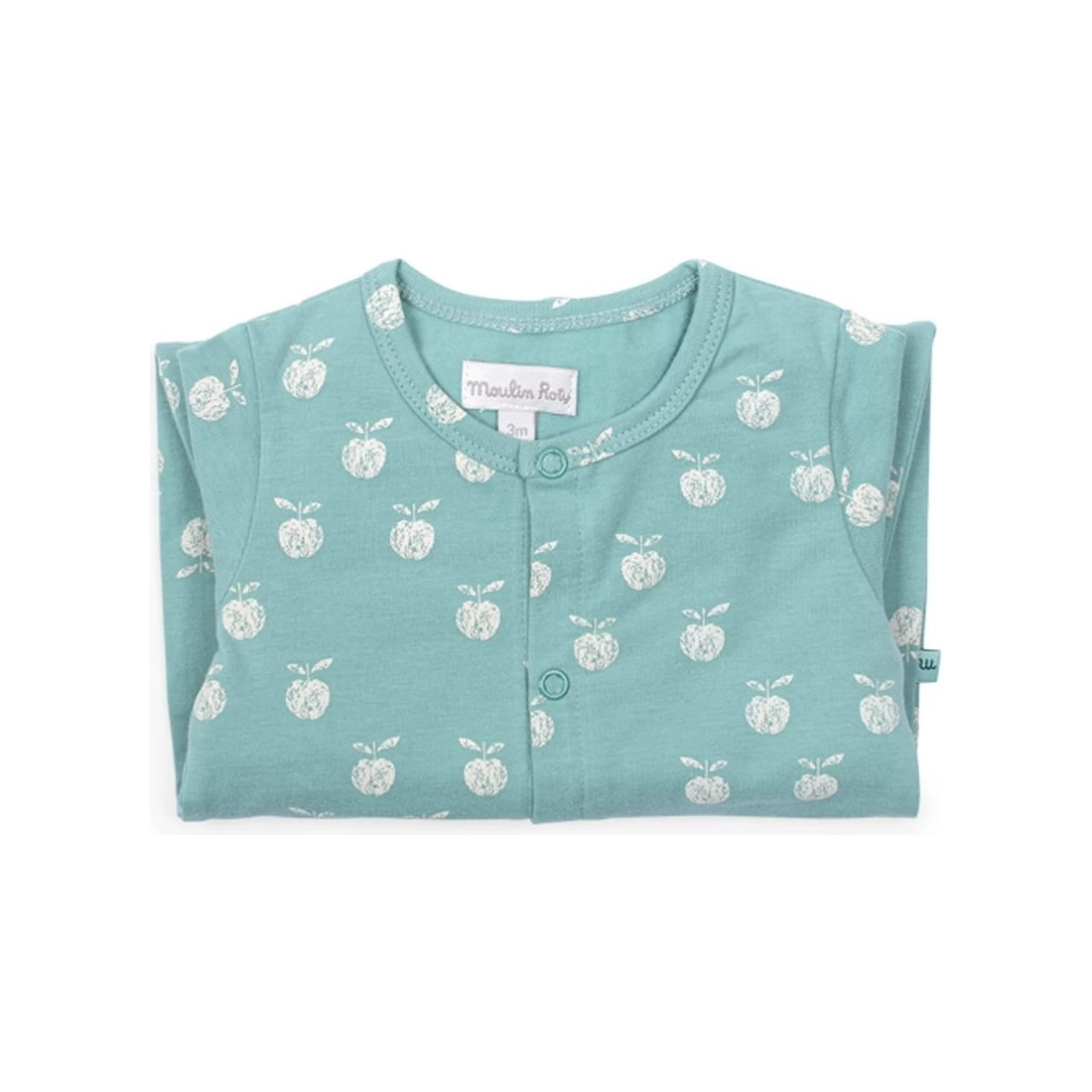 Le pyjama bébé 1 mois en est composé de coton biologique, il procure douceur et confort à votre tout petit, tout au long de ses longues nuits ! et motif pommes blanc cassé, en jersey de coton pour laisser respirer la peau de bébé. Finition carbone pour la douceur. Le pyjama jersey Moulin Roty Pomme des bois est composé principalement de coton labellisé Oeko-Tex®, pour respecter la peau délicate de votre tout petit. Il est recouvert de petites pommes blanches sur un tendre fond vert, qui accompagnent avec douceur votre bébé au pays des rêves.