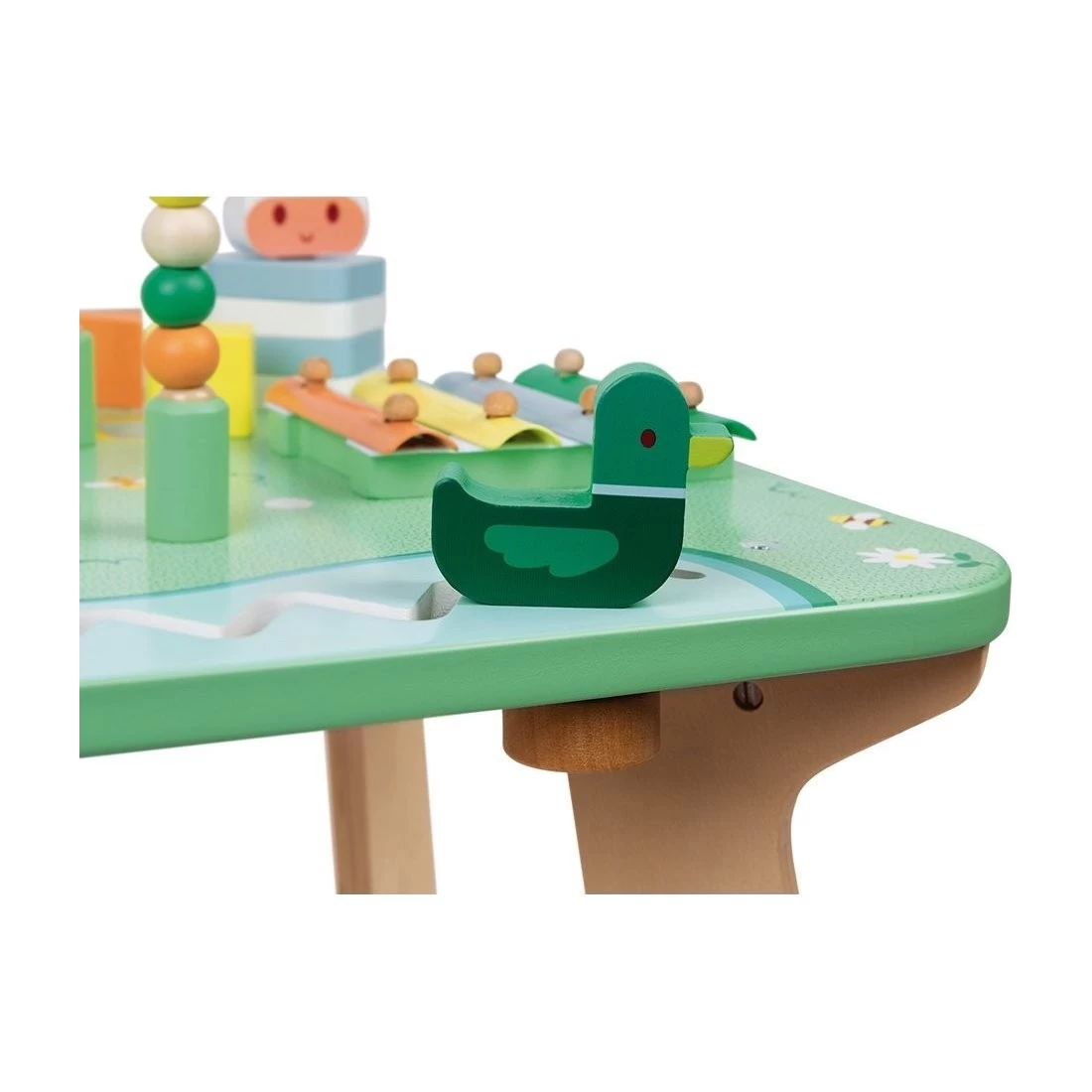 Les éléments de jeu pour votre bébé sont magnifiques : une prairie où se trouve un étang avec une piste pour un canard en bois. Faites découvrir à votre bébé les 7 activités de cette polyvalente, y compris : 2 animaux qui peuvent être empilés de deux façons différentes pour développer sa motricité ; un labyrinthe avec un canard qui se promène dans son étang, conçu pour renforcer la coordination mains/yeux ; un équipement bébé peut tourner pour en savoir plus sur la cause à effet, 3 cubes intégrés pour en apprendre davantage sur les formes ; un pour développer la concentration et un métallique avec 2 baquettes pour développer les talents musicaux de bébé !
