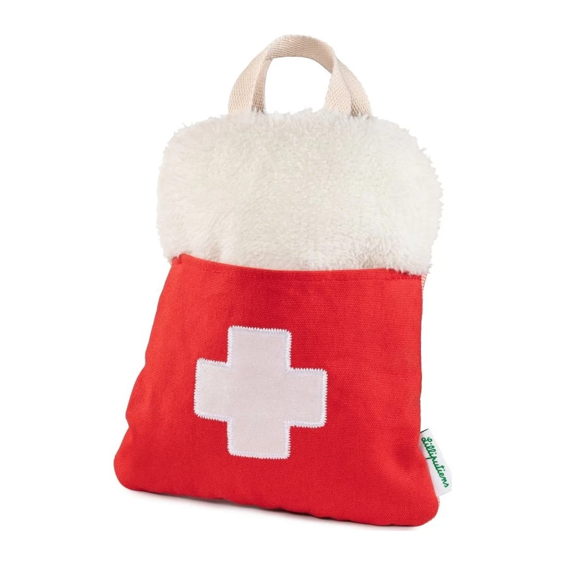 Dans ce beau jouet d’imitation, Alice la renarde est malade, il faut la soigner avec tout l’équipement contenu dans la trousse, qui sert de housse de transport mais aussi de lit pour coucher la petite malade.
