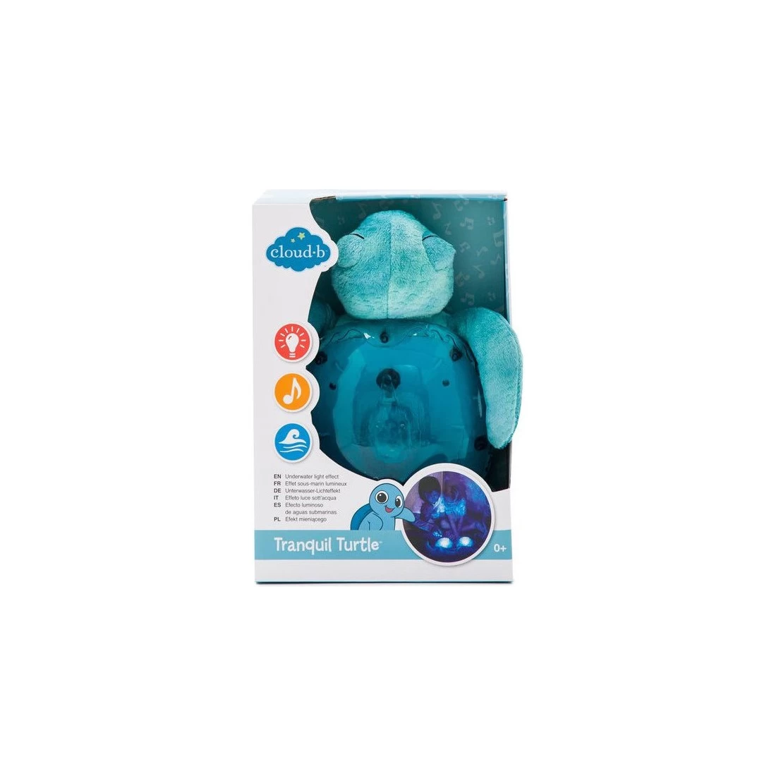 Apaisante, cette jolie accompagne bébé dans le sommeil. La projette des jeux de lumières au plafond, évoquant les mouvements de lumière dans les fonds marins. Le bruit des vagues vient compléter cette projection apaisante pour bébé.