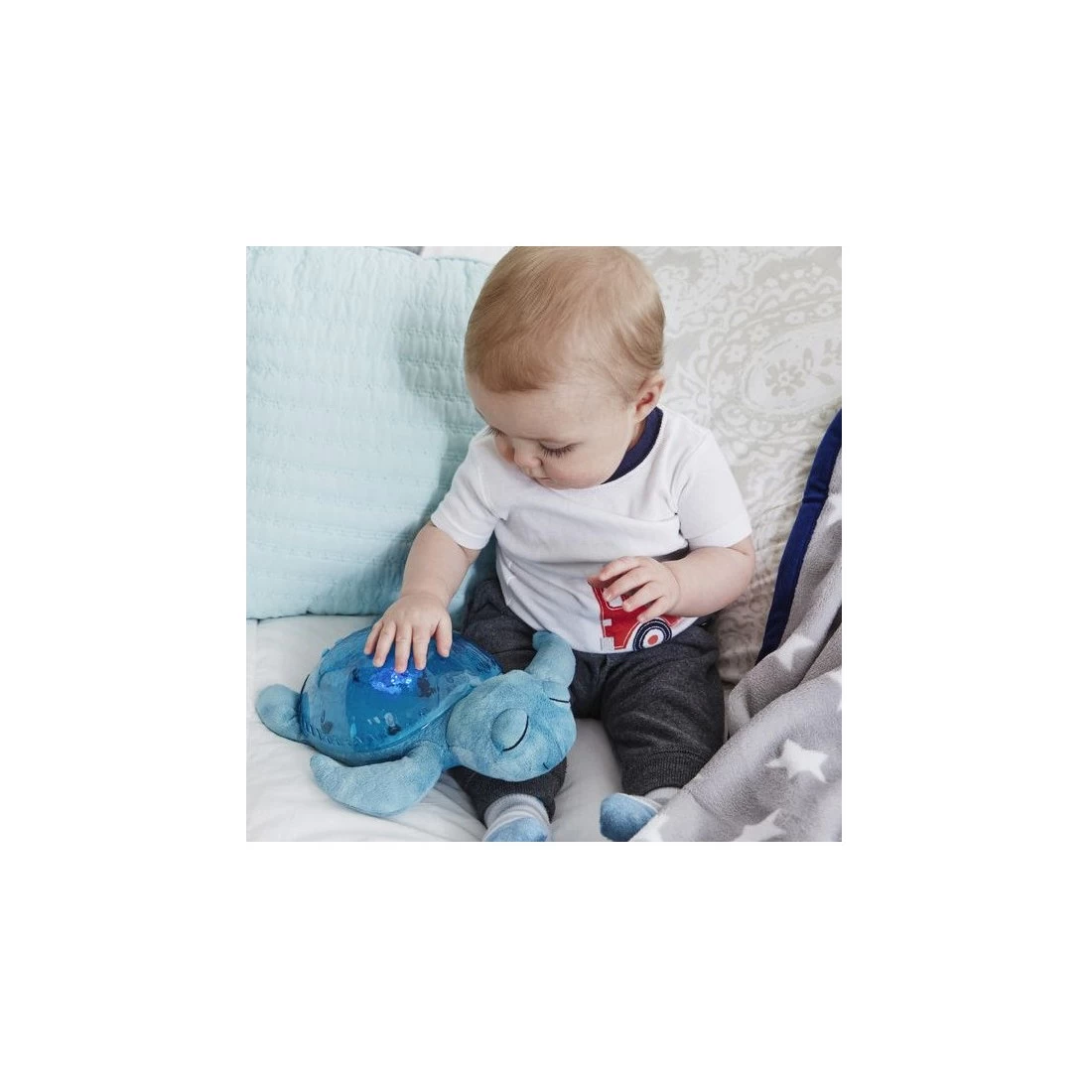 La veilleuse musicale Tranquil Turtle est une pour bébé, qui représente une adorable tortue toute douce. Sa jolie carapace emerveillera bébé par ses étoiles brillantes projetées au mur de sa chambre.